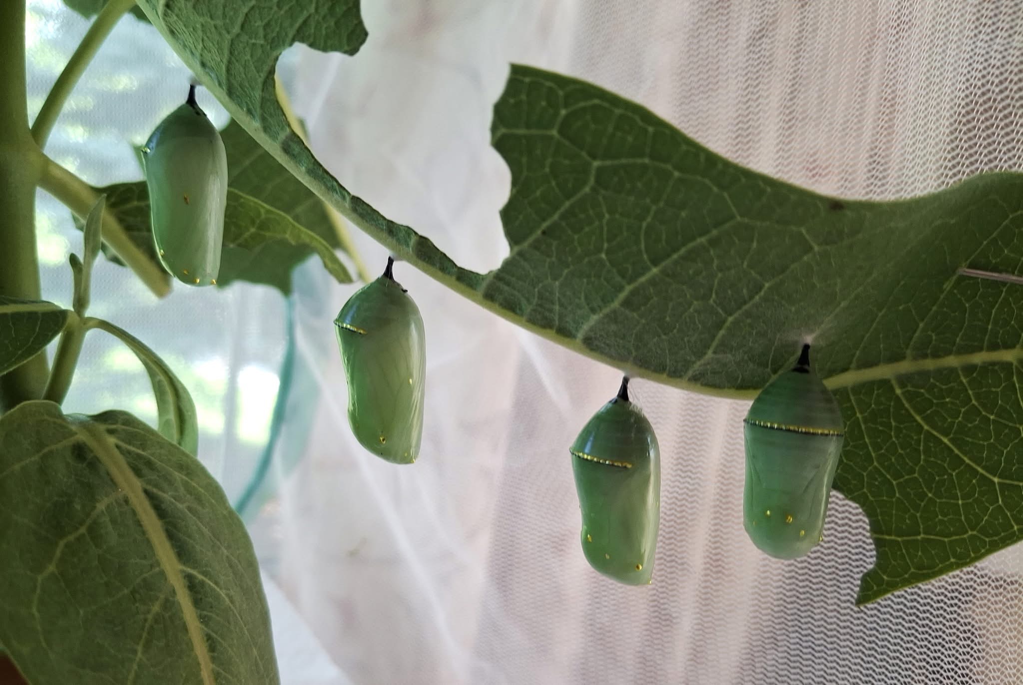 Finding monarch butterfly eggs on the milkweed I planted. Feeding monarch caterpillars until they J and then pupate. Releasing healthy monarchs into the wild. Joy, pure joy!