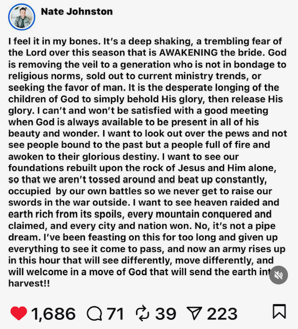I’ll answer that question. It is a sign that the spiritual realm is becoming obvious to people who have never thought about it. This is a definition of spiritual revival. People are asking the question, “Why are they doing this?” and the spiritual is the only explanation because the actions defy reason or logic.