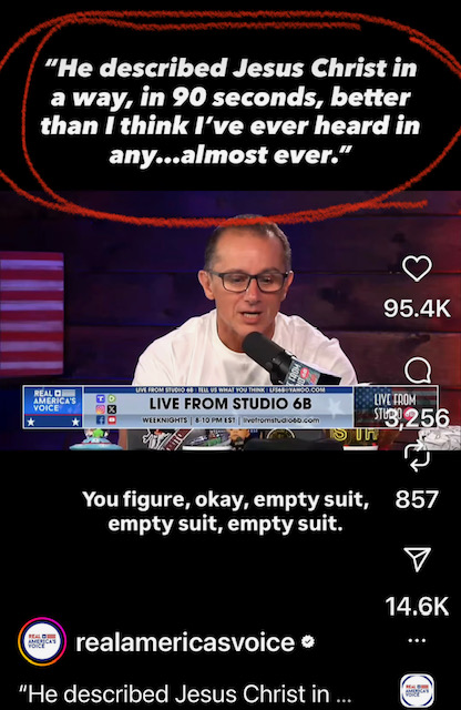 Those not in ordained ministry are generally called lay people or laity, which distinguishes them from clergy like pastors, priests, or ministers. Tucker used his few minutes to talk about repentance. Repentance! Imagine that – a career political commentator/broadcaster talking about repentance, a topic not regularly heard in church pulpits in 2025, sadly.